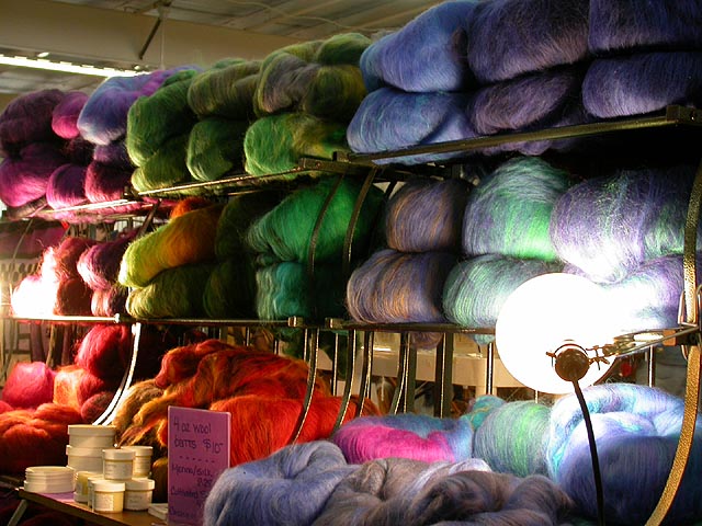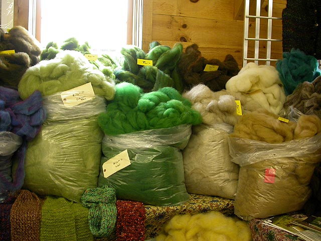 the parking was free but admission into the fair was $7 per person. there were several buildings, converted barns and animal stables that housed the various vendors. they came from all over new england and the tristate area, selling bundle of colored fleece, sticks of yarn, knitting needles, spinning machines, pewter jewelry, handmade rugs, felt toys, candles, animal raising equipment, and other handcrafts.
