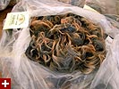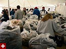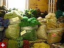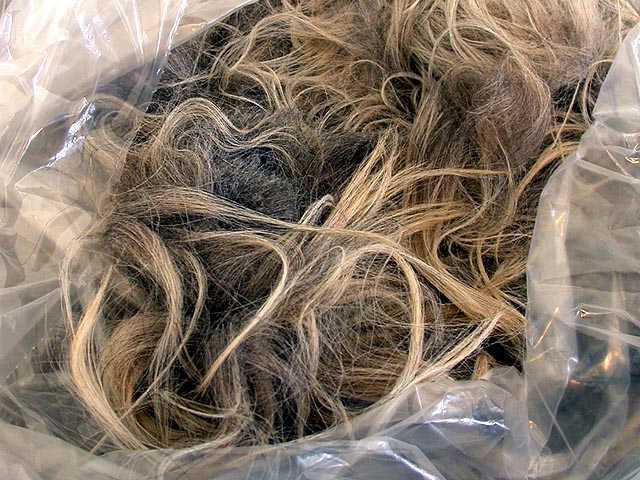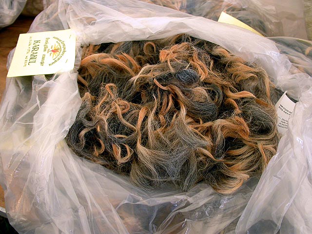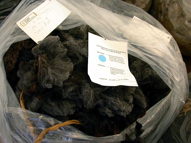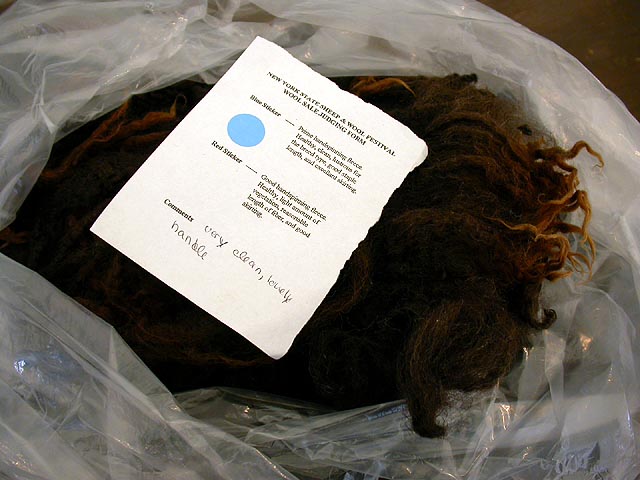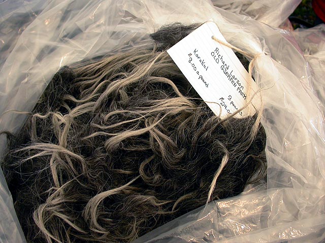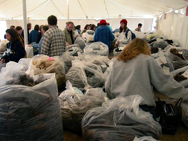 i didn't realize it but they were actually selling lamb burgers, which to me seems really weird, like finding dog meat at the westminster dog show. it was really strong lamb too, everytime i passed them i could smell the odor. shannon and i reunited, and she said she wanted to visit the fleece sale tent then we could go home. inside was like being in filene's basement, a large number of people scrambling through clear garbage bags filled with fleece trying to find bargains. for some reason it reminded me of teas as well, how they're essentially all the same but just different variations in color and texture. shannon ended up splitting a bag of fleece with another woman. i waited outside, bored, along with a few other men, waiting for her to pay so we could leave, my capacity for festival nearly overloading.