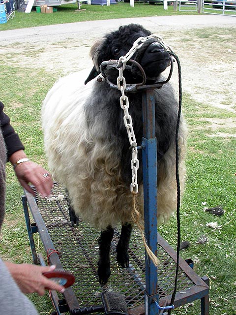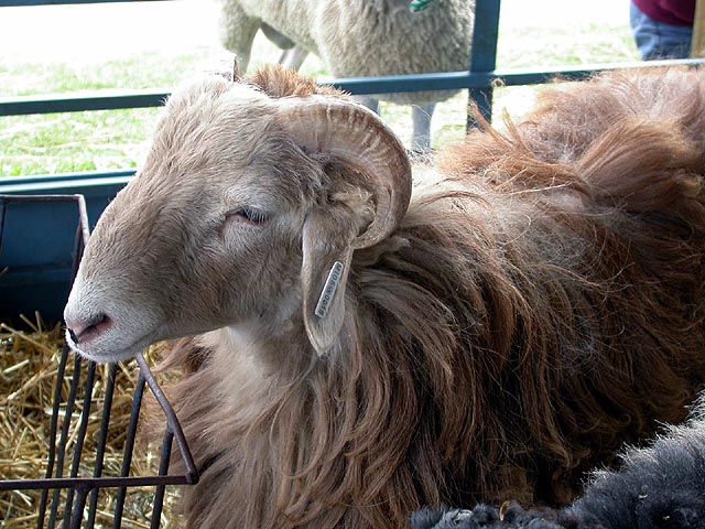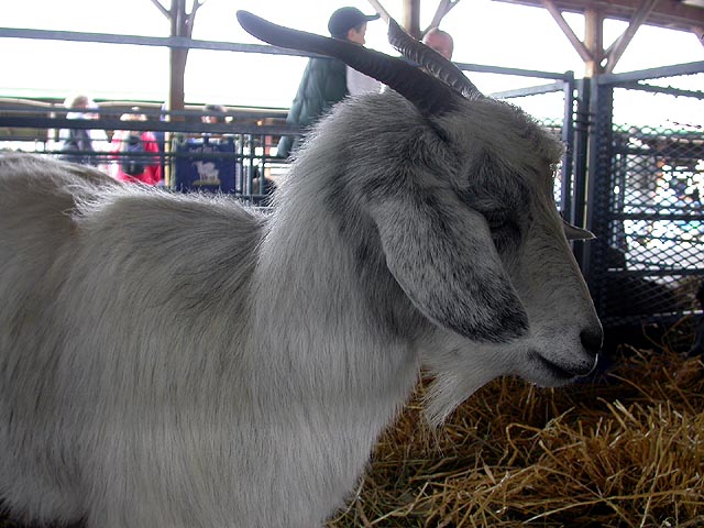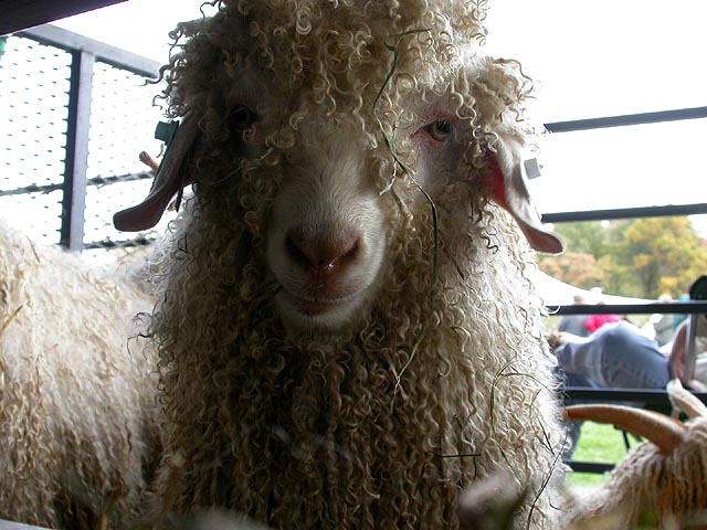 i've seen so many different varieties of sheeps and goats, and you could pet them too, their owners never seemed to mind the attention. i rubbed a few muzzles and was surprised how warm they were. they also seemed to be in one of two states, either timid or very friendly, never aggressive. i suppose this is the domesticated prey mentality, generations of selective breeding have produced the perfect "sheep" personality. these weren't run-of-the-mill animals either, they were all purebreds, with names and lineage information attached to cards on their pens. some of the sheeps were "coats", which i guess is to keep their fur from getting dirty (those sheeps looked like the ones that produced felt). it's amazing the different assortment of fur color and texture and pattern.