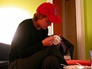 15 minutes before our food was ready, we browsed at city sports then went around the block to pier 1 imports. both julie and i got candles, i went with half a dozen tuscan herb votives, a musky scent, reminds me of a strawberry shortcake character that i can't quite remember (honeysuckle scented? but not really). we came back to the porter exchange to pick up our food, then drove back to my place, where we ate and watched the suck ass series. i lit one of the tuscan herb votives, smells pretty good (that's what the cashier girl told me when i paid for them).
