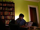 alex wong ended up coming over for dinner. i didn't make anything, he ordered some peking raviolis and then made soup from a can which he brought along with him,