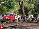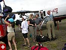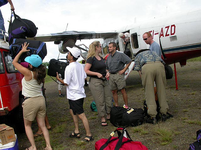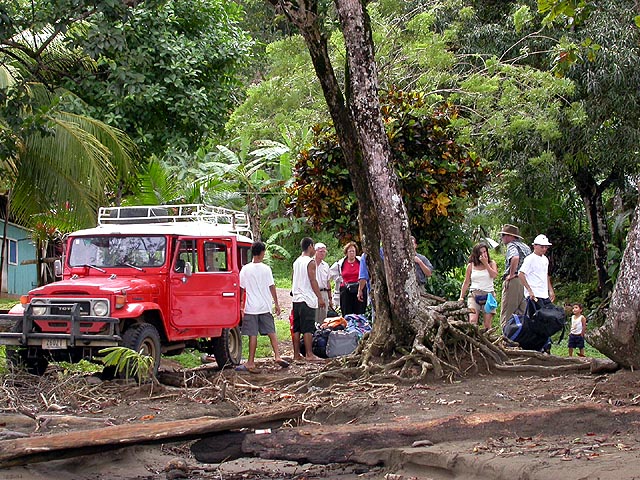 the capital is built on top of a hill, so it never gets too hot and there's always a plesant breeze. here on the lowland of the osa peninsula, the weather is how you'd expect a jungle to be, hot and humid. there was an suv waiting for us with a carload of returning passengers. the plane itself was heading to yet another destination. those going to drake bay got off, and they brought out our luggages, which were transferred to the luggage rack on top of the suv. we piled into the vehicle and went on our way to the resort, while those who were waiting got into the plane.