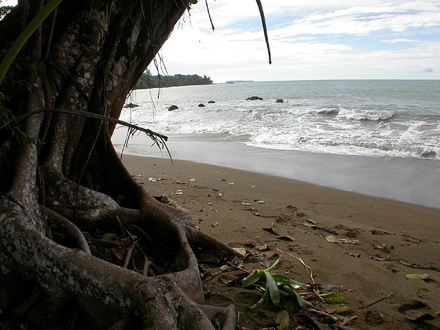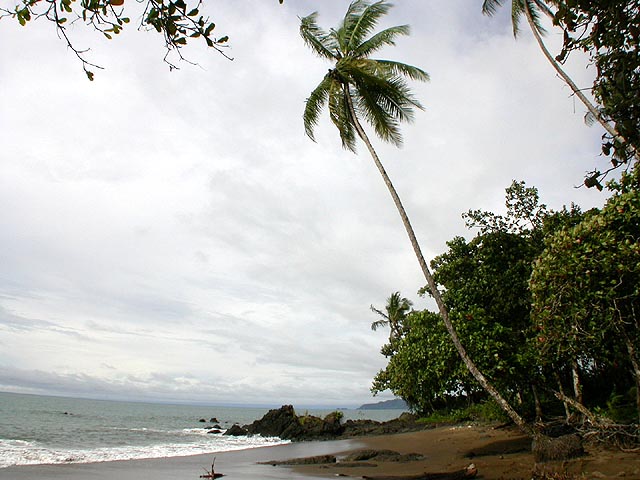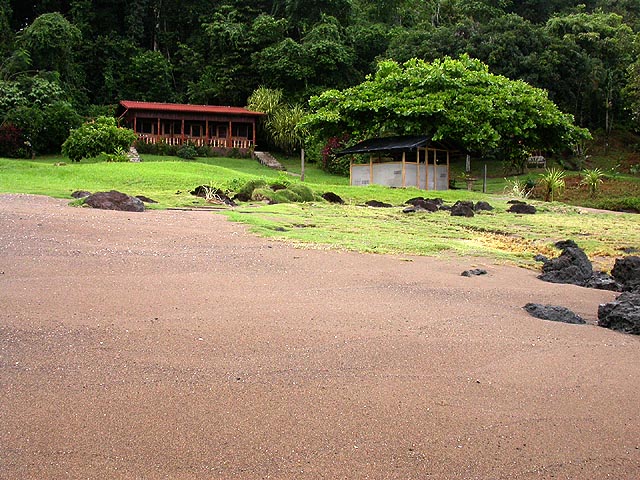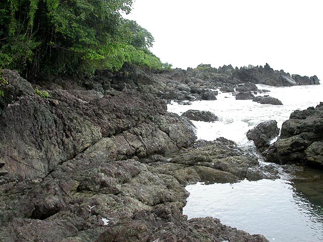we went back to the office where we checked in for real, a woman named maleni was there, she basically gave us the info about the resort, about their services and the things we can do. since this was our first day and we had nothing scheduled, we basically wandered around the place on our own. we walked around the shoreline facing the pacific ocean, volcanic rocks forming tidepools. hermit crabs were everywhere, as well as sea snails. occasionally we'd see a fish or two. we found a carambola tree, my father picking a ripe fruit off of the ground to eat later. mimosas grew like weeds, their leaves closing as we walked through them. we went back to the cabin, where it started to rain. even though i told my father a few times before we left, he didn't bring any rain gear, not even an umbrella, so he went back inside while i stayed out a little bit more, walking a stretch of sandy beach.