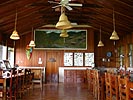 but after a quick phone call, we were told we could see our cabin first. we got cabin 20 out of 22 cabins, at the farthest end of the resort. the room was modest, wooden shutters, venetian blinds, screen windows. two beds, one twin, one queen, a ceiling fan, a mural on the wall with some sort of sea landscape. the first thing i did was to take a shower. i was worried at first when only a dribble of water came out from the shower head. "ah, cold showers only," i thought with dismay, but a minute later the water turned hot. the shower stall was large, perhaps big enough to fit 9 friendly people. the water never did come out any better than a soft dribble, but it was hot (heated by their solar panels), and from what i've read about some of the other resorts around here, that's very much a luxury out in the wilderness.