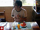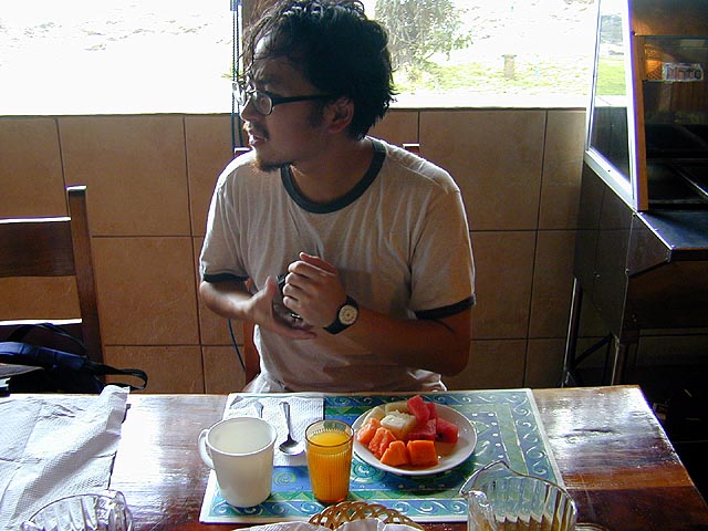 when we got there we were met by a man named miguel who said in broken english that we could go into the dining room and get some breakfast before going to our cabin. we told him we wanted to see the cabin first, maybe freshen up, before eating. he was a little hesitant because i think it broke some sort of resort protocol,
