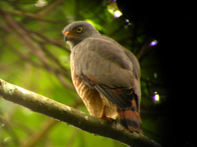 off in the distance, i saw two toucans fly by overhead, their silhouettes unmistakeable, a line of a beak seen from below. by 6:30am everyone who was going was waiting on the top of he dock, just ourselves and faye and jonathan. our guide would be manuel again. my father bought a cheap clear plastic poncho from the office while i wore the gerald's rubberized poncho from last night.
