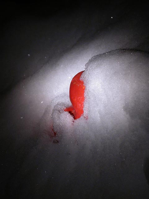 after alias (the story gets more and more complicated, sydney & will hitting it? sark torturing his estranged father with a blowtorch? and no new episode next sunday?), i went to work on another short round of bug fixes for my one neverending freelance project. once that was done though, i once again breathed a sigh of premature relief, and went out into the backyard with a flashlight to check up on the progress of my lawn gnome. only the tip of his hat is visible. so how tall is the gnome, 16 inches? at least that much snow fell in my neck of the woods.