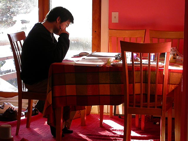 i woke up weird, woke up stressed. nothing directly affecting me, but my roommate mike was starting his 8 hours (8am to 4pm) take home final for one of his law school classes, and it brought back some personal test-taking memories, all bad. all i could do to help him was take my 30 minutes to prepare for work and leave him alone.