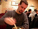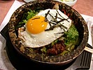 the movie was the count of monte cristo. i remember the place had a dirty feel to it because the walls were "decorated" with graffiti. almost two years later, i see the interior design remains unfortunately the same. the first time we went, the manager of the restaurant had to actually come out and teach us how to eat bi bim bap, which is to mix everything up in the bowl. second time around we weren't going to fall into that amateur trap of not knowing how to eat the food, but nevertheless the waitress had to intervene and tell us to put the hot sauce along with the mixture. throughout the course of the meal, i asked dan a bunch of aquarium questions, to get some insight into the world of fishkeeping. two korean girls sat in the corner table talking on their cellphones the whole time, another long table served a korean family enjoying a lovely hot pot dinner, and before we left, a table of trendy young japanese came in, 1 boy 4 girls.