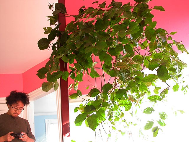 during the daylight hours, i spent my saturday in domestic bliss, running the dishwasher, microwaving some oatmeal for lunch, replacing the batteries of the beeping smoke detectors in the basement, and pruning/training the jasmine bush in the kitchen.