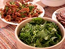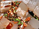 we had hotpot, which i've got down to a science now as to how to eat everything. we had two pots running because of the number of people (10). one of the pots had a divider, one half for normal, the other half for "mala" which is this hotpot base we've been using the past few years, the name means "numbingly hot" in chinese, so hot that the soup becomes a shade of red if enough sauce is added. the favorite meat in our hotpot is thin slices of lamb that you're only supposed to dip into the boiling water just enough so that its no longer pink and then you can eat it. i eat my lamb in a mixture of soy sauce, sarsa roast sauce, coriander, and chinese chives. i also like the tripes because of the texture, and quail eggs, which you have to be careful because the yolk can be hot when you bit into the egg. because of the "mala" base, the new thing i like to eat are lettuce leaves that have been stewing in the sauce. the leafy portions, because of all its folds, really soak up the flavoring, and if you're not careful, you can easily choke on the strong hotness. tofu squares are also good at absorbing the flavor, but not as well as lettuce leaves. for dessert, we had fruit salad with my aunt lili made (with persimmon seeds) and then we had my flan. flan grade for tonight: a lot more holes in the pudding, and the caramel was way overcooked so that it tasted burnt, but nobody complained except for me.