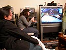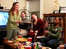 back at home, i ate the rest of my thai red curry leftover (pretty gross, thai food doesn't preserve very well apparently), then headed down to harvard square to catch the free 66 bus into allston to dan's place for his new year's eve bash. long lines snaked out of bars, as people waited for a coveted spot inside these popular drinking holes. i stopped off at a liquor store beforehand, getting a bottle of sweet muscat flavored champagne for the special event. quite frankly, i would've been happy alone at home for new year's eve in front of the television watching the law & order: special victims unit marathon on the usa network, but the big attraction for me in going over to dan's place wasn't the party, but rather his fish tank, combined with my newfound interests in having an aquarium of my very own. we alternated between dick clark's new year's even celebration (surprisingly bland this year, all the musical numbers were prerecorded and didn't was hiding in a studio somewhere while cohosts jessica simpson and her husband worked a faux party crowd at another unspecified location) and univision's new year's eve variety show hosted by the sabado gigante guy and a bevy of spanish hotties. at the clock approached midnight, dan worked the champagne bottle, feverishly getting it opened and pouring us all a cup of fizzle water as 2003 became 2004.