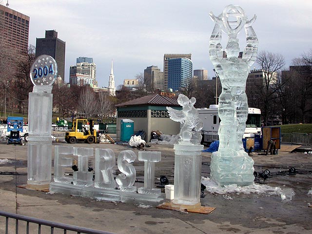 after work i wandered around boston common a little bit, the park starting to fill up with people out celebrating first night. i wanted to see the ice sculptures for myself, and true to reports, they were in a sorry state, crumbled, melted, not worth the price of the free admission to see them. i caught the tail end of the new year's eve parade and overheard some guy tell his girlfriend, "my brother was born in the year of the monkey, my uncle was born in the year of the monkey, and my mother was born in the year of the monkey."