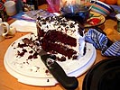 there was a spontaneous flash of boggling, rob and i flipped through eliza's stack of art books, much carrots were consumed with dip, and david mustered enough strength to play and sing some elton john on his piano. at one point everyone gathered in the kitchen to sing "happy birthday" and to present the birthday cake. eliza told me she got the birthday card, i was surprised since i sent that out tuesday morning. i talked to a friend of hers who rides a scooter year round, sharing stories.