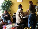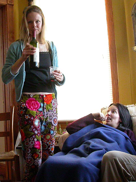 i stopped off at star market to buy a bag of oranges as a present, no particular reason, just didn't want to show up empty handed. there were two camps, david, eliza's enfermo roommate, represented one camp,