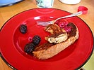 and she spent most of her time in there. as for me, i sat down on the piano bench and rarely left. i had some french toast with berries, along with a cup of champagne, and then later a cup of red wine. besides eliza and her roommate dave and a few other faces i vaguely recognized, rob house showed up as well in that small world kind of way, a friend of dave's (review: rob and i know each other from our screen house days, then later he did a brief stint at srm, working with me as well as eliza). here and there were also eliza's coworker friends from her current job and as well family members.