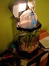 i had the leftover ribs for dinner and the rest of my canteloupe. heavily caffeinated eliza called me twice to invite me to an impromptu party at her place, but i told her i had to stay with my fish. i finished out the evening with a hot shower listening to music, secretly wishing that no more fish would die.