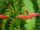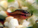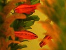 the other 4 fish seem fine though. cherry barbs look like very tiny reddish goldfish (they're from the same family, cyprinids). i saw them eat the flakes, and each seem to be developing its own personality, although i try to remain detached from them since i believe they might not last very long with my semi-cold water tank. there's one that's definitely a little bigger than the others, and i saw it eating first.