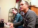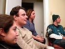 intercepting peyton manning 4 times, so it wasn't as edge-of-your-seat exciting, it was very business-like, just another day at the office for the pats. next up was the eagles game against the panthers. dan's friend brendan showed up with his friend emily, followed eric beacom, then john miller and deanna (in town from new york).
