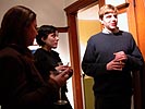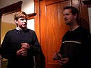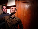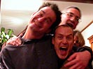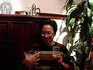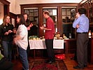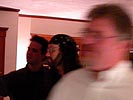 there was already a lot of people by the time we got there. mp3's were being streamed from an apple powerbook, and people crowded around the food tables in the dining room and the kitchen. there were a lot of friends of eric and csilla, none of whom i recognized, as well as ex-screen house people, whom i all knew: joyce, roy, joel, jim, dave, then later tim giordano and rob house. it was almost like a mini-screen house reunion, and the party was split up into two camps, extshers and others.
