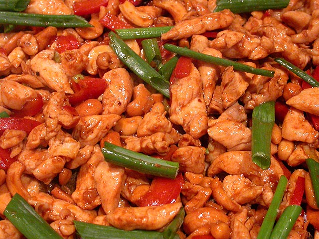 today's dinner was a slightly improvised affair, mongolian barbecue flavored stir fried chicken cooked in chili oil with red peppers and cashew nuts and scallions served over egg noodles. dessert was interspersed throughout the day, an ice cream drumstick one minute, a dish of flan the next. i washed the bathroom (the shower walls), scrubbing between the tiles with a bleaching agent until my hands were thoroughly infused with the smell of chlorine. i went grocery shopping to stock up on some food i'll be having tomorrow, superbowl sunday. on television i was fascinated by the idea of the 7 layer party dip on the food network.