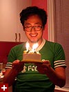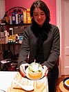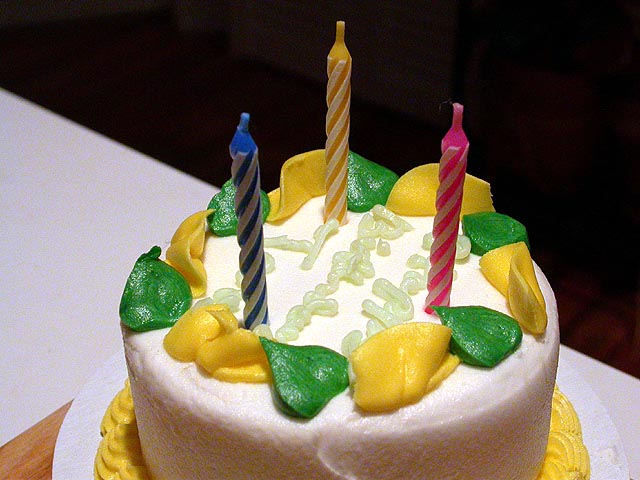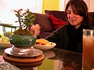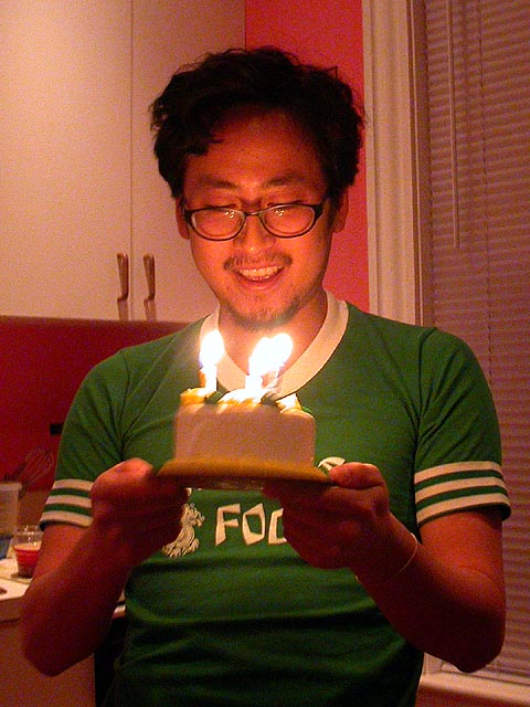 fresh from rhode island, renata arrived a little bit after 7pm, bringing with her a small birthday cake and a present, a jade plant bonsai. originally we scheduled for saturday, then it was moved to friday, and now sunday night. last year on my 29th birthday i spent it with renata by coincidence (at the time she didn't even realize it was my birthday, i told her afterwards). i made some bubble ice tea while i was preparing the tacos. half a glass of that tea i had brewed earlier, mixed in a blender with an ice cube and some fructose syrup and non-diary creamer (to make it frothy), added back to the glass with some ice cubes and tapioca balls. i didn't find it sweet enough and the tapioca balls were starting to get hard (i should've heated it up a little bit in the microwave), but renata seemed to like it and she was fascinated by the tapioca balls.