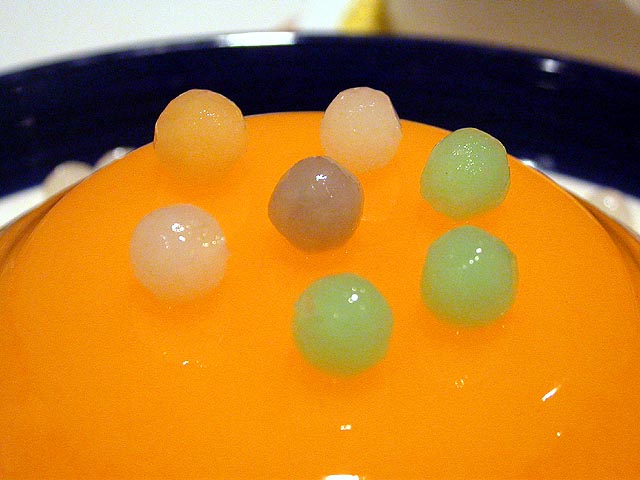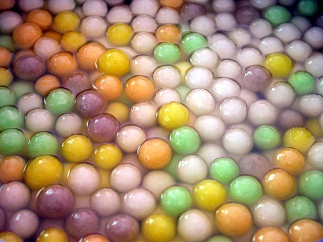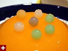 at the same time i was boiling a bag of colored tapioca balls for the bubble ice tea i wanted to make. they sank when i first put them into a pot of boiling water but then floated to the top. they don't have any taste and they're very soft and chewy, like gum. i drained them and put them in a container for the fridge.