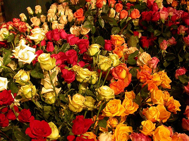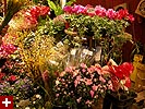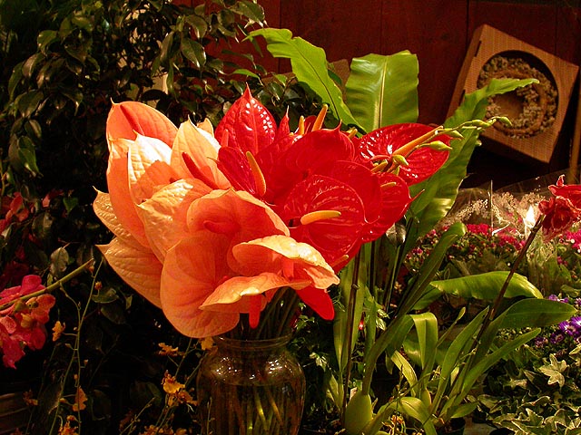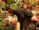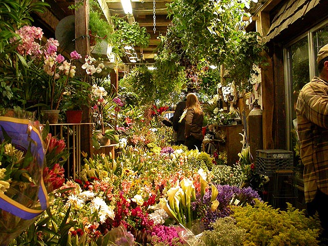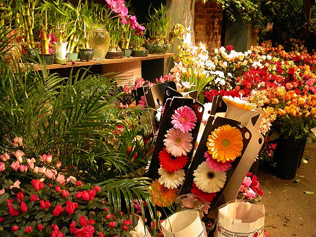 after the play, we went to a florist so renata could get some thank you flowers for her neighbor. signs of spring abound everywhere, forsythia, pussy willows, cherry blossoms, flowering bulbs. renata, a former florist herself, impressed me with her botanical knowledge (you know how much i love that sweet nature). there was a collection of roses sitting on the floor, and from the look of things, they'd seen better days. renata showed me how to squeeze test the roses to tell if they're still fresh or not. the place inspired me to consider getting more houseplants for my own place. currently, i only have a dormant jasmine bush in the kitchen, some lucky bamboo in the bathroom, and the jade plant bonsai birthday present from renata. even just simple flowers, when was the last time i bought those? back when i was unemployed and painting for a living, i'd use the money i made to buy some flowers every week to brighten up the house. renata ended up getting a clutch of soon-to-bloom yellow daffodils and some pink hyacinths.