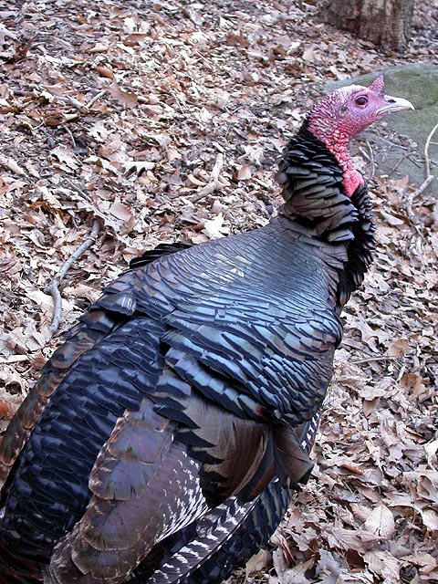 there was a snowy owl, we acted like a malfunctioning robot, swiveling it's head back and forth, then turned around and ejected some noxious fluids from its anus. at one corner of the cage was the remains of its dinner, a partially digested rat. there was a pair of wild turkeys, and i love telling the story of how the national bird of the united states was almost the wild turkey (an idea pitched by benjamin franklin).