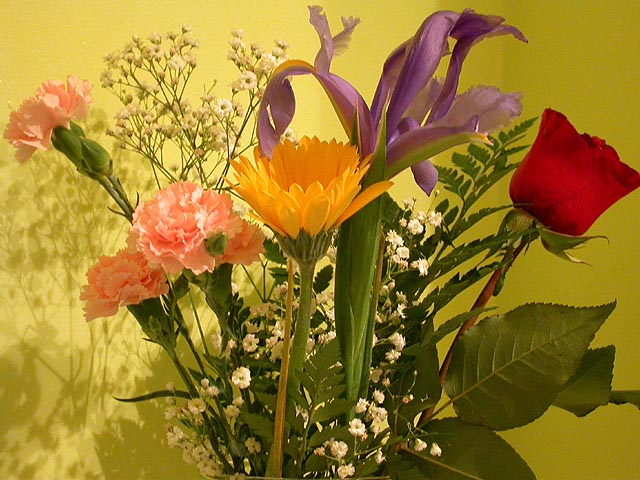 i ran a few errands first, went to ace hardwares to get a bag of potting soil and a packet of cat grass (the nearness of spring compels me to start growing things again), then went by porter square station to buy some flowers to brighten up the house a bit. my father came by to show me how to make hot and sour soup. into a pot went 4 cans of chicken broth, a can of water, a handful of tiger lily stems (soaked for about an hour), a handful of wood ear mushrooms (soaked as well), 2 teaspoons of ground white pepper, 3 tablespoon of soy sauce, a handful of shredded bamboo shoots, small tofu cubes. once everything came to a boil, we added two tablespoons of vinegar, with 10 teaspoons of corn starch mixed with some water. finally, 4 battered eggs slowly poured into the pot to create strands. we both had a cup before my father left to go back to work.