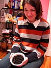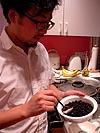 chi?" renata, sporting an attractive white velour shirt, asked to borrow a sweater (renata finds my place notoriously cold during the winters). after dinner, we made bubble ice tea. i didn't bother with the blender, but when i added the non-diary creamer, it made the tea look like bath water. i also didn't have normal ice cubes, just the ones with the slices of lime in them, so the ice tea had a twist of lime. renata picked at the tapioca balls (black translucent ones this time, from my parents' cafe) when i wasn't looking.