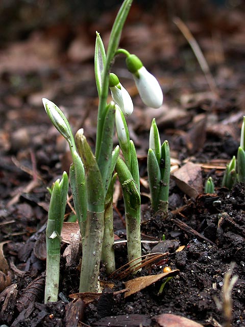 earlier, i saw some house finches and chickadees attacking the birdfeeder. there were some snowbells emerging from the soil.