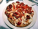 today we had carly's birthday lunch at vinalia in downtown crossing. the place was a little fancy, the kind of restaurant with a single sheet of menu items. i had a wood oven cooked chorizo pizza with mozzarella cheese (the chorizo tasted remarkably similar to kielbasa sausages) then had a creme brulee for dessert. walking back to the office, we watched as kristine sped far ahead of us, with adam following a distant second.