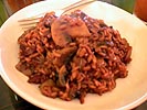 it was julie's turn to make dinner and she made a red wine with mushroom risotto dish. i made some smoothies (with difficulty, the frozen fruits clogged up the blender) and some garlic bread.