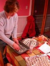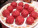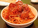 i got some groceries and came back home, right around the time when julie arrived (by foot, she didn't want to lose her sweet somerville parking spot, especially when it's snow emergency night). while julie made the breadsticks, i made the golfball-sized meatballs. i've never made spaghetti and meatballs before. it reminds me of school lunches for some reason (maybe because that was the only time in my life where i ate a lot of that stuff). who would've thought you needed bread crumbs? and an egg? i then tried to cook them in a pan, but they were slow to cook so julie suggested dumping them with the pasta sauce, letting everything simmer.