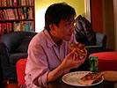 i left work a few minutes before 6pm, got home just in time to catch all of the nightly news at 6:30pm. an hour later alex wong came by with an armload of more cooking ware he's trying to get rid of. we made french bread pizza and watched pride fighting on pay-per-view.