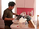 with the sunlight saturating the kitchen, it just feels right some how, a postcard captioned "domestic tranquility". i also made some scrambled eggs with bits of chive and a glass of homemade banana milk. i have to work on my morning foods. since i usually don't bother waking up early enough for breakfast anyway, my cooking language is missing that whole set of vocabulary.