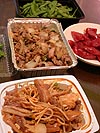 my parents came over around 6pm, family dinner at my house for a change, my sister absent on one of her faux nanny gigs. we got an order of fuxifeipian from zoe's, which was really off the mark tonight, wasn't spicy at all, the sauce too sweet, and the portions surprisingly small. the best time to frequent a restaurant is when they first open, because they want to impress the customers. after a while though, restaurants cut corners, less ingredients for more money, and eventually the food isn't very good anymore. i've seen it happen at a lot of places (suishiya, anyone?), and i'm not saying it's happening to zoe's, but the price of brisk business might be going to their heads.
