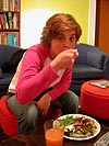 it was a tasty meal, although unfortunately something didn't agree with julie and she had stomach issues throughout the night. we think maybe it was the bacon fat (which the potatoes were cooked in until crispy), rich in flavor, but if your stomach isn't used to that level of grease, it can give you a bad time. tonight's episode of queer eye: another makeover dad episode featuring a mullet+moustache sporting father. i think the 18 year old step-daughter was the one that really lucked out, with her new flat screen plasma television, ibook, and ipod, the accoutrements of cool. the father was so mellow, his laid back style was almost hypnotic.