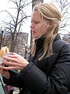 i told eliza if she went over there, they'd given her an honest evaluation of her appearance and she could find out if she had that certain special "it" quality ("hey beautiful!" one of the men shouted to a business woman walking by). a mangy squirrel approached us, and eliza threw it some bread from her sandwich. the squirrel sniffed at the bread ball and ran off. huh! dissed by a squirrel! i thought they ate everything, but apparently that squirrel was too good for bread.