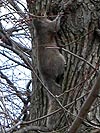 a fat pigeon with far less discriminating taste hobbled by and took the bread. eliza then got the idea in her head that maybe squirrels eat meat, so she next tried some chicken bits. the mangy squirrel came back, sniffed the chicken, and ran off again. huh! what a finicky squirrel! no wonder it's mangy. though it seemed to hate our food, that squirrel wouldn't leave our area. it climbed a tree and seemed to be paralyzed on a branch, perhaps just resting, enjoying the faux good weather. suddenly it scampered around the tree trunk, and from the treetop we saw a large bird flying away, which turned out to be a hawk. did the squirrel scare the hawk, or did the hawk freak out the squirrel?