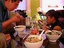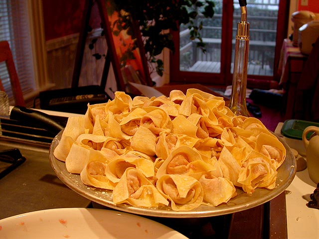 i tried to explain that it was just a visual quirk, that her underscores weren't being converted to spaces. it took several tries before she finally believed me. i left as quickly as possible. my parents came over with ingredients to make homemade wontons and we had wonton soup for dinner. my father helped me organize some of the stuff alex gave me before he left for japan ("this box is for computer cables, this box is all office supplies, etc."), and i let him take whatever he wanted from the spoils. after dinner, we had some of my spoiled strawberries, followed by some orange givrées, and the last of my flan (which my parents shared).