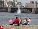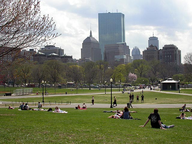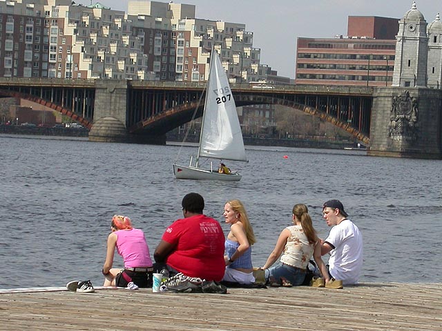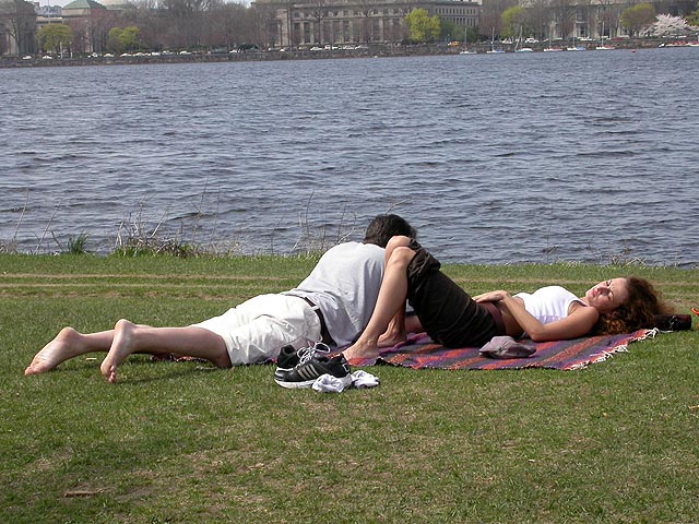 a fish of that size must have some amazing survival instincts in order to get to where it is today, and would never appear at the same place more than once. however, i did see a pair of swallows skimming the surface of the water, too fast and too small to get any good photos. i went around the charles river then cut through boston common. i think my new hobby this summer is to just come out here and take random photos of people. there's a kind of cheap thrill when you can get really close to somebody and take an embarrassing photo of them without them knowing about it. i bought an italian sausage ($4.50) for lunch and went back to the office with its nice air conditioning.