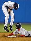 and a-rod was still struggling batting wise as well as most of the yankees. towards the end of the game it started to drizzle down in the bronx and we went online to get the animated satellite radar maps to see if they'd call the game due to rain (fortunately they didn't). when the smoke cleared, the sox were up 3-1 overall against the yankees in this early season, and that's without some of our starters like nomar and trot nixon. these are happy times in red sox nation.