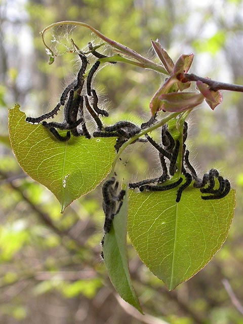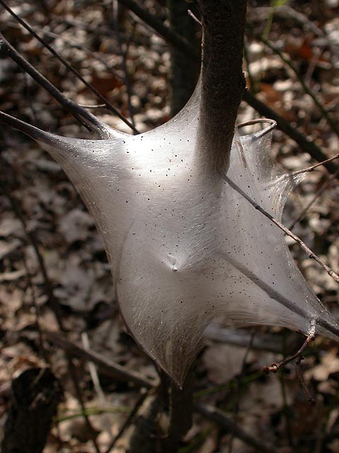 nearby i spotted a caterpillar tent and decided to get a closer look. for some reason there was no caterpillars to be seen, which i thought was kind of odd. that's before i looked overhead and saw hundreds of tiny tent caterpillars defoliating the tree they were born on. it was seriously gross. i started touching my hair to make sure i didn't come in contact with any of the caterpillars by accident. i brushed my neck and felt something, and when i looked in my hand, it was the crushed remains of a caterpillar. i quickly got the hell out of there, taking it as a cue to finally go home.