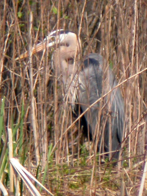 chewing off the wood to make their nests. i saw a large dragonfly go by, but i didn't get a good look to identify what it was. something in the sky casted a familiar shadow and when i looked up, it was a beautiful yellow tiger swallowtail butterfly fluttering away. there was a group of people on the boardwalk seemingly captivated by something in the middle of the marsh, all cameras and binoculars pointing in that direction. it was a great blue heron hiding in the tall grass. something was swimming in the water. i got excited, hoping it was a snake, but it turned out to be a muskrat.