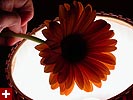 at porter square i bought some gerber daisies before walking home. it was starting to rain slightly, i had thought we were in store for some nice weather, but it was overcasted pretty much the entire day. i finally got in touch with renata, who said she was coming over. when she got here, she gave me a farmer's painting she bought in xian, china. she also had all her photos on flash memory, and gave me a quick narrated slide show, from taiwan to hong kong to parts of china. by the time we were ready to go out, it was already 6pm.