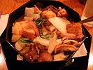 the food is an eclectic mixture of different cuisines with an emphasis on freshly grown organic ingredients. the bathroom was located in the back of the restaurant and involves walking through the narrow kitchen in order to use it. inside the small bathroom, a seascape mural worthy of spongebob squarepants envy. renata had some sort of curry dish, i went with a mushroom and chicken stew. the food was delicious, very hearty, although a bit warm for a spring day (it'd be perfect winter food though). i only got through half of the stew before i couldn't eat anymore. renata made it to the halfway mark on her own dish before stopping as well. we got our doggie bags, paid the bill, then left.