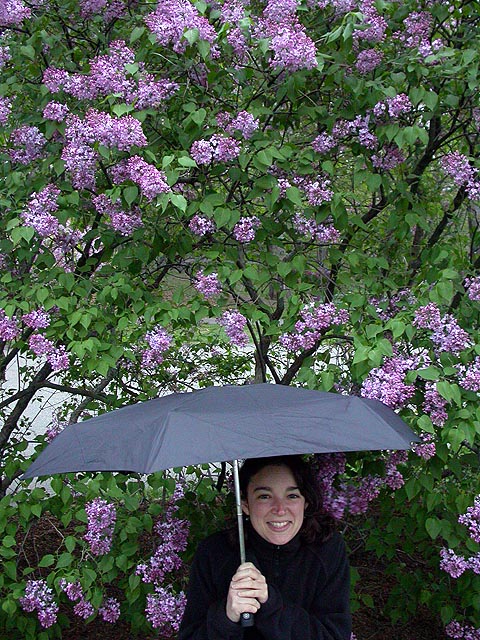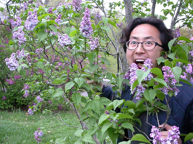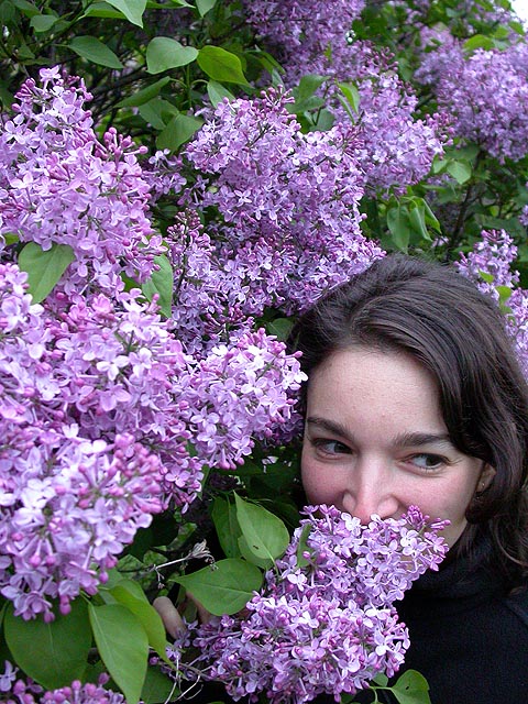 i was pretty much lost, and if it wasn't for renata, i wouldn't know where i was going. occasionally we'd pass a jogger or somebody walking their dog. i was having sinus troubles and had a hard time smelling things (which is a cruel irony when you're out lilac spotting), with an intermittently functioning olfactory sense. we went around sticking our noses into each lilac bush, teasing out the subtle fragrances between different varieties. renata kept on raving about how she loves lilacs.