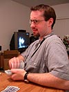 rob house was the big winner tonight, his name was like a curse word, spoken with disbelieving disdain over his lucky streak. slogans like "nobody beats the house" were bantered about a few times as rob's stack of chips grew more and more. i think rob himself didn't believe it either, considering how i had heard rumors that when poker night was first started many months ago, he was the unwinningest guy there. there were some poker lingo i wasn't quite familiar with, but for the most part i understood the game, asking questions when i was in doubt. i stayed for about an hour before leaving around midnight, cutting back through the underground passageway.